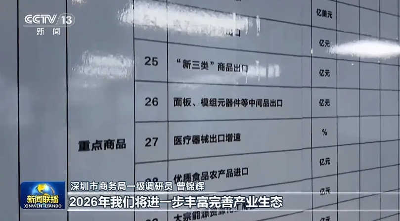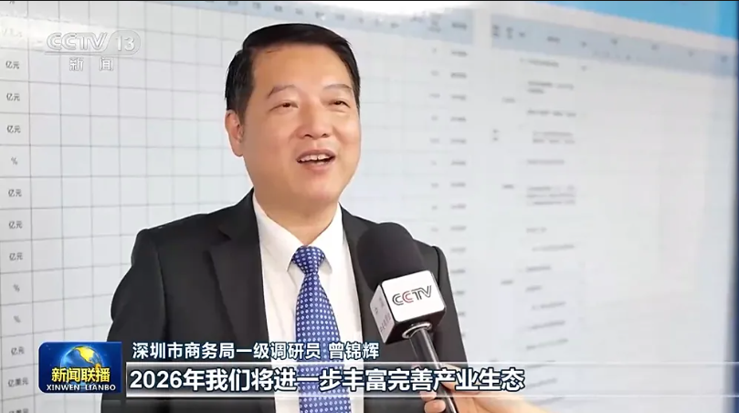 深圳市商务局一级调研员 曾锦辉:2026年我们将进一步丰富完善产业生态,以“造高端”持续巩固“卖全球”优势,出口商品向新、向绿、向智发展,发展壮大外贸增长的新动能。